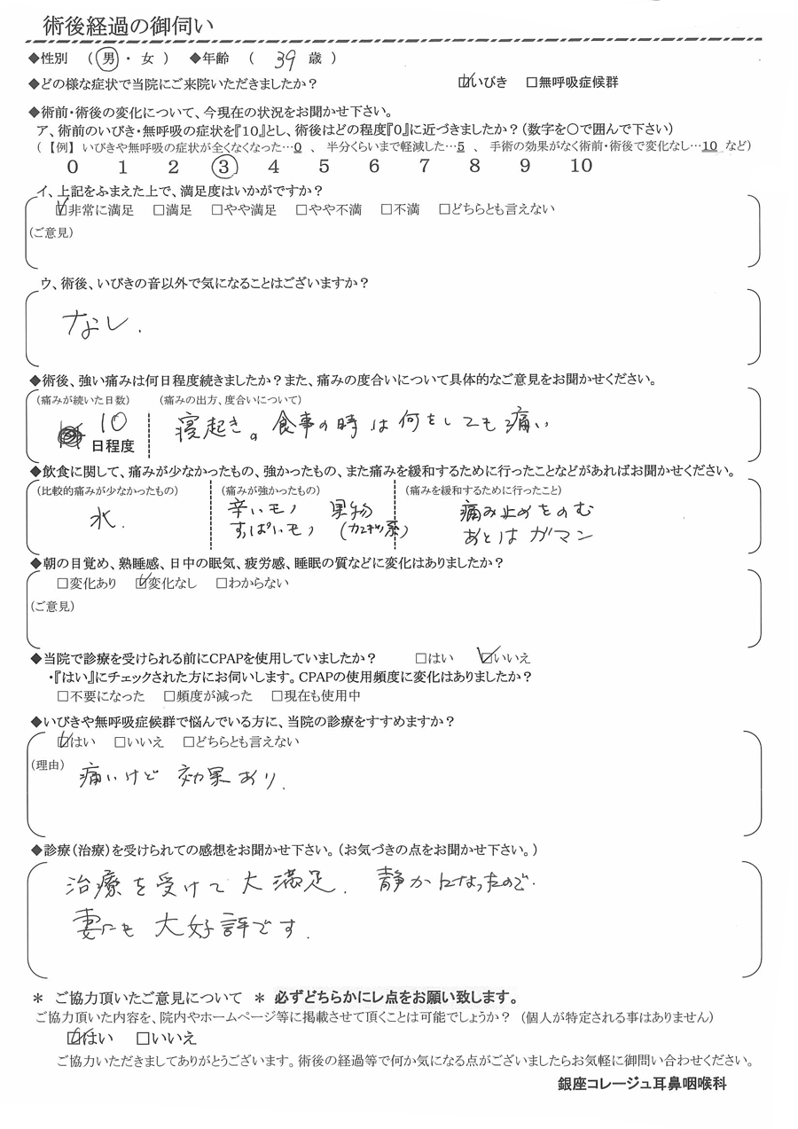 A: 治療を受けて大満足。静かになったので、妻にも大好評です。