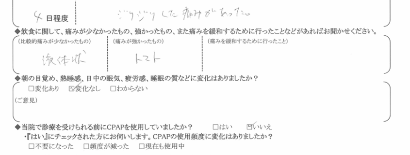 Q.診療(治療)を受けられての感想をお聞かせ下さい。