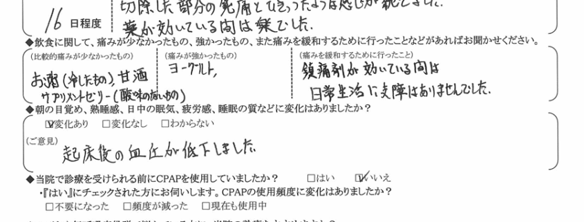 術後の患者様の感想 No. 2710