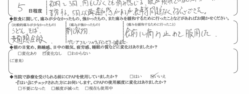 (ご意見) いびきの音は無くなりました。
