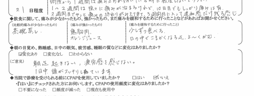 ウ、術後、いびきの音以外で気になる点はございますか?