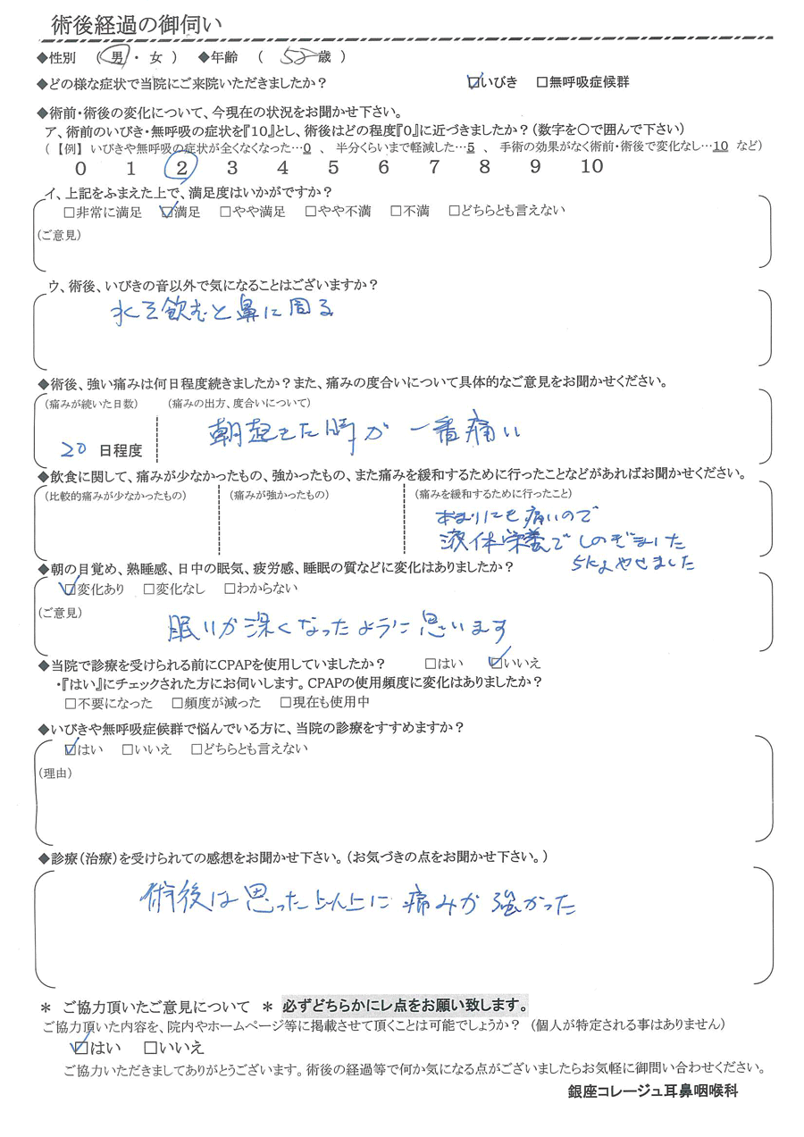 ウ、術後、いびきの音以外で気になる点はございますか?