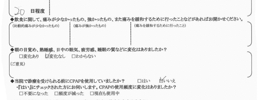(ご意見)  いびきの音の種類が変わっただけで、大きさに変化なし。