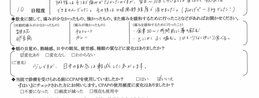 (ご意見) 少しですが、日中の眠気は軽減した気がします。