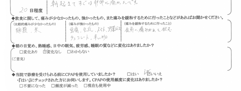(痛みの出方、度合いについて) 朝起きて直ぐは非常に痛かったです。