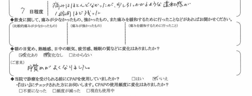 Q.術後、強い痛みは何日程度続きましたか?また、痛みの度合いについて具体的なご意見をお聞かせください。