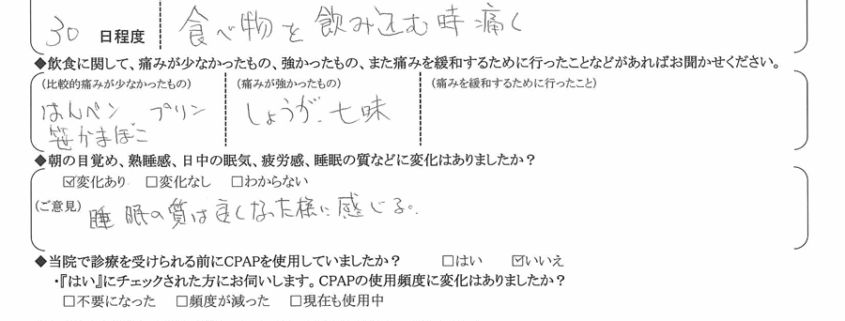(痛みの出方、度合いについて) 食べ物を飲み込む時痛く。