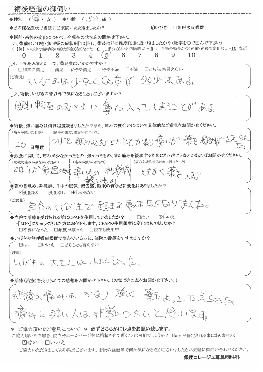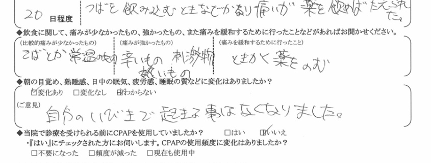 (ご意見) 自分のいびきで起きる事は無くなりました。