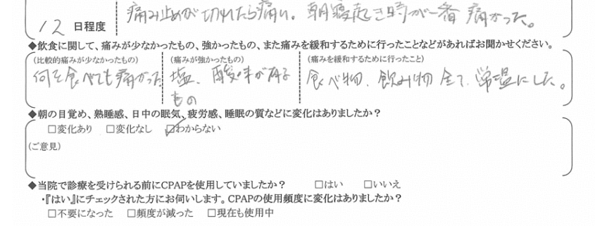 A:(痛みが少なかったもの) 何を食べても痛かった
