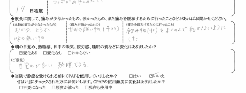 A:(痛みが少なかったもの) おかゆ・豆腐・味の無い物