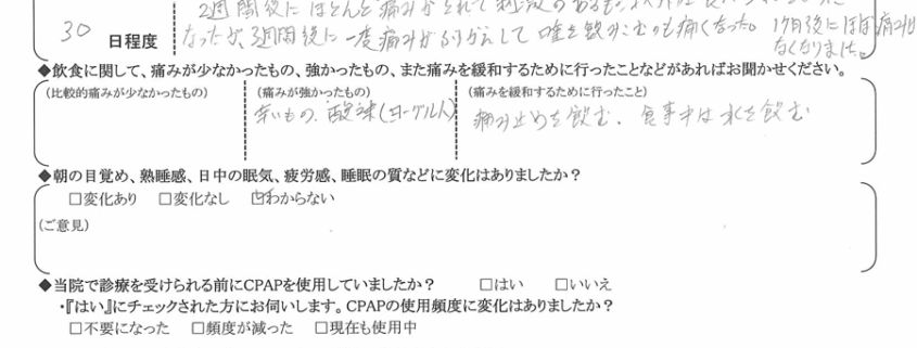 A:(痛みを緩和するために行ったこと)  痛み止めを飲む・食事中は水を飲む