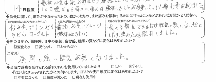 (ご意見) 昼間の強い眠気が無くなりました。