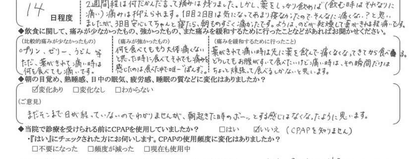 Q.診療(治療)を受けられての感想をお聞かせ下さい。