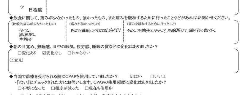 (ご意見) いびきに関しては、家族の苦情が無くなった。