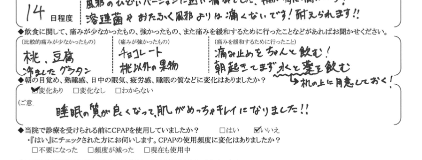 Q.飲食に関して、痛みが少なかったもの、強かったもの、また痛みを緩和するために行ったことなどあればお聞かせ下さい