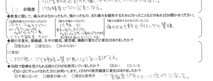 (ご意見) CPAP無しでも睡眠の質が悪くならない気がする。