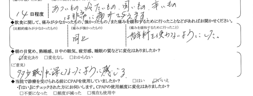 Q.飲食に関して、痛みが少なかったもの、強かったもの、また痛みを緩和するために行ったことなどあればお聞かせ下さい