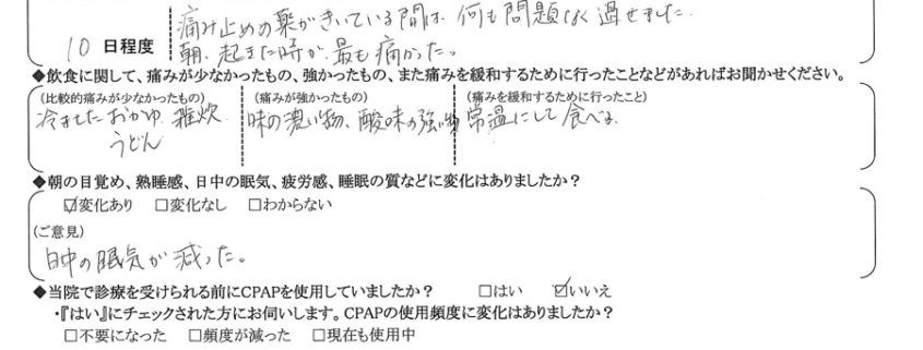 Q.朝の目覚め、熟睡感、日中の眠気、疲労感、睡眠の質などに変化はありましたか?