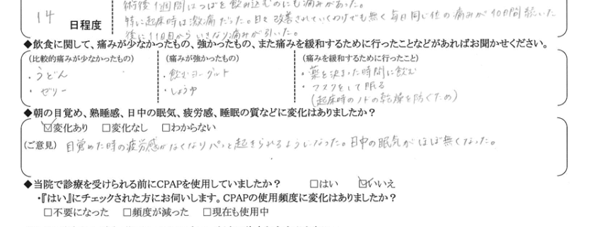 術後の患者様の感想 No. 2815