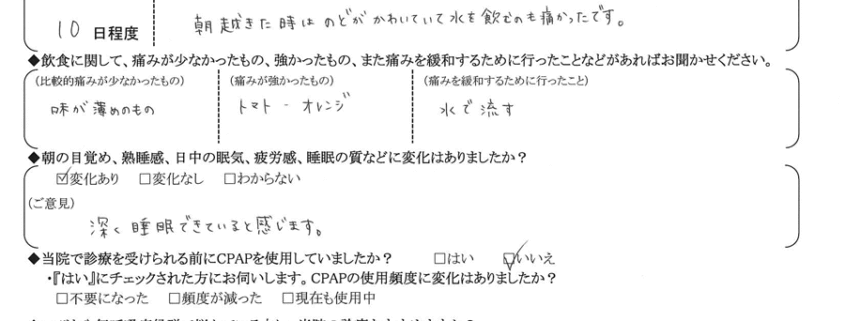 Q.診療(治療)を受けられての感想をお聞かせ下さい。