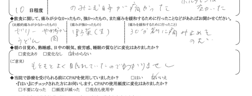 術後の患者様の感想 No. 2842
