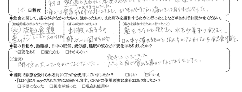 (ご意見) 明け方の大きいいびきが無くなった。夜中にいびきでパッと目が覚める事が無くなりました。