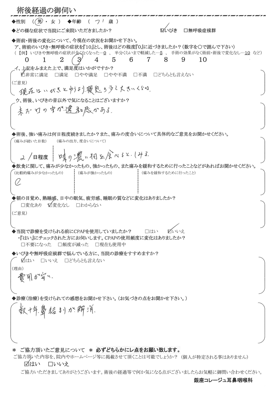 (ご意見)  現在はいびきとゆうより、寝息の少し大きいぐらい