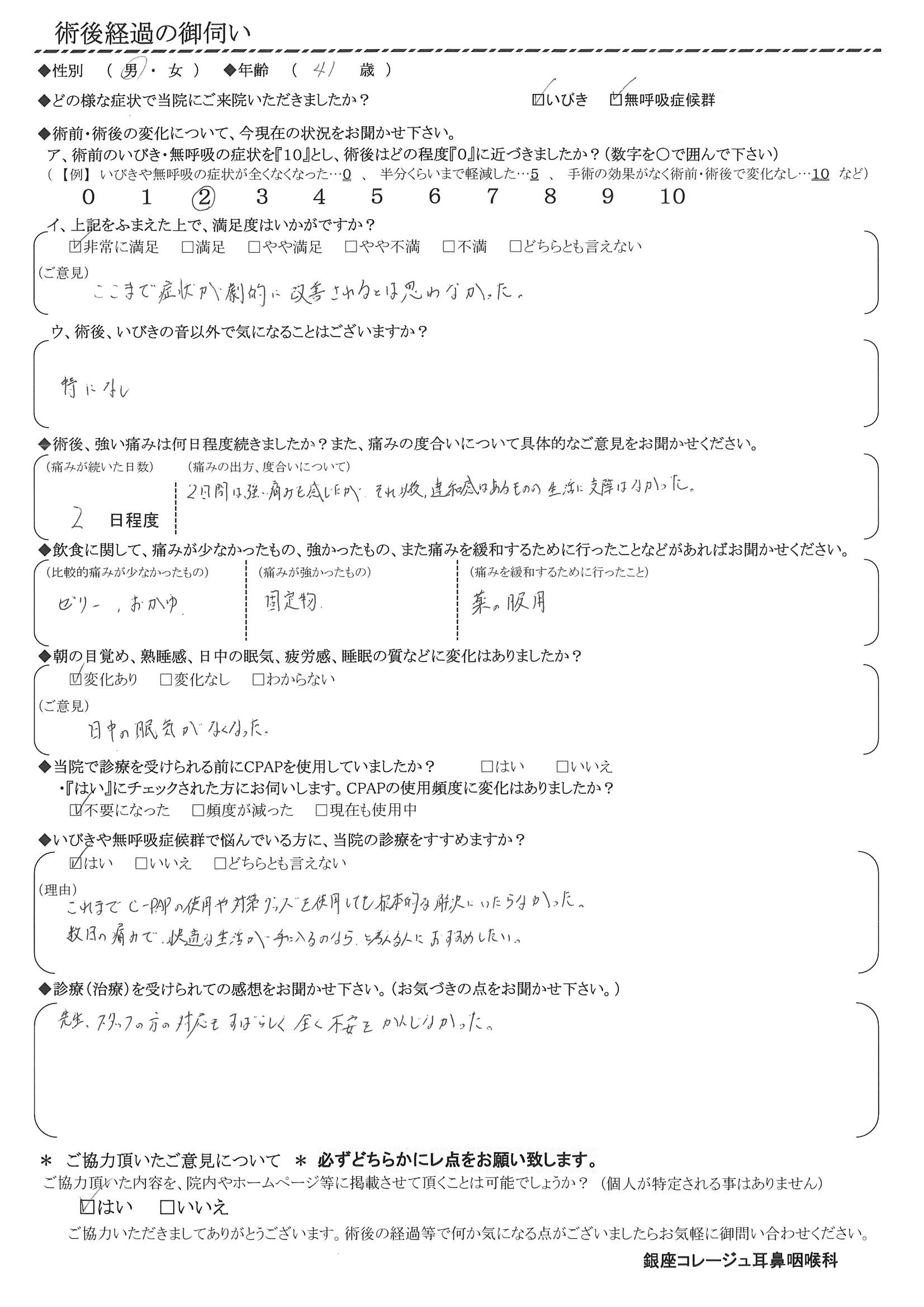 術後の患者様の感想 No. 2927