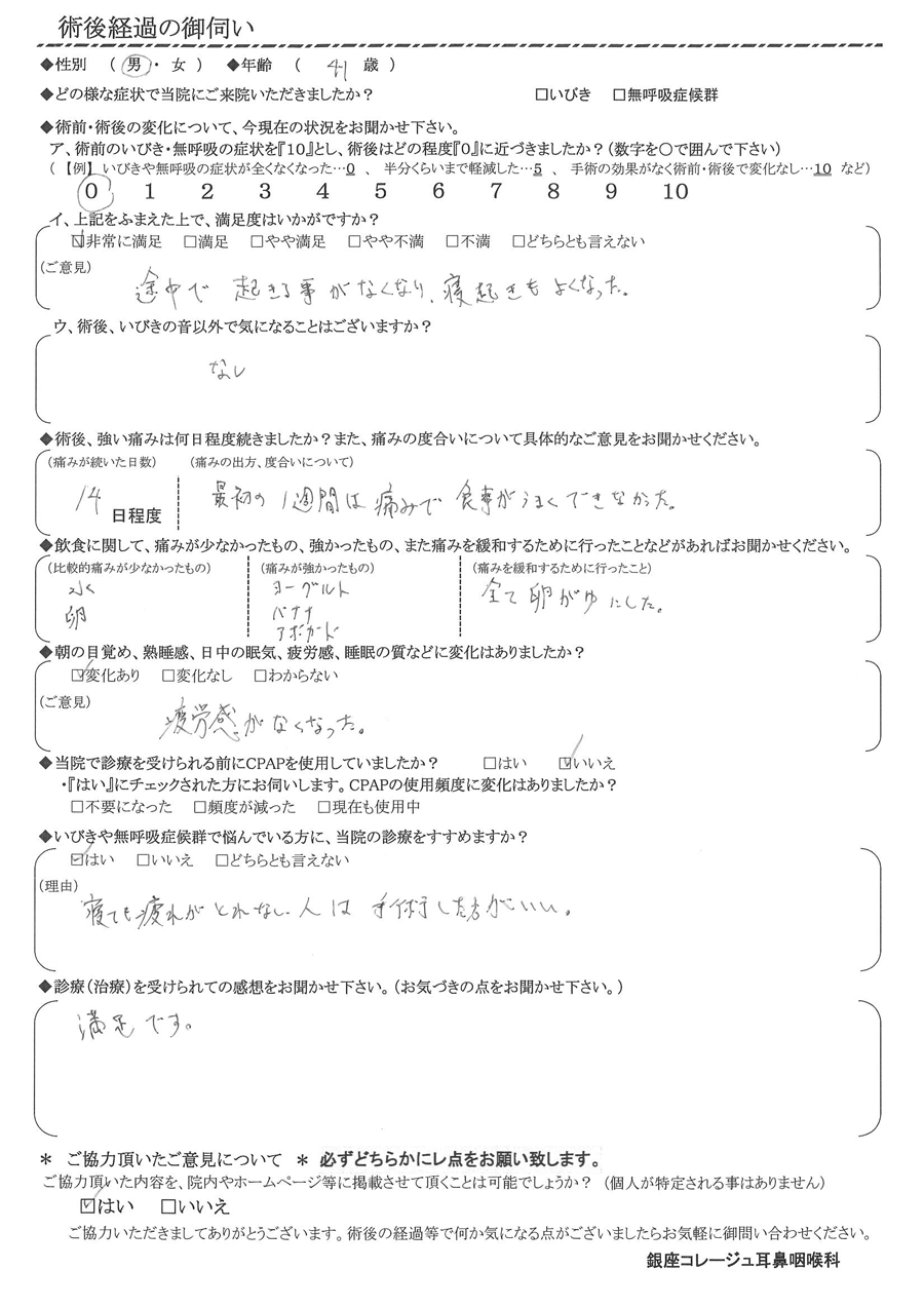 術後の患者様の感想 No. 2930