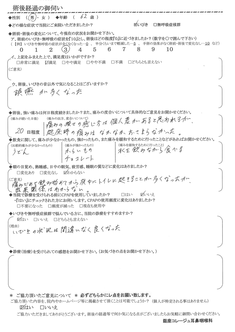 術後の患者様の感想 No. 2941