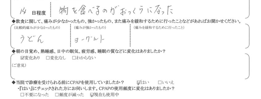 (痛みの程度について) 物を食べるのが億劫になった。