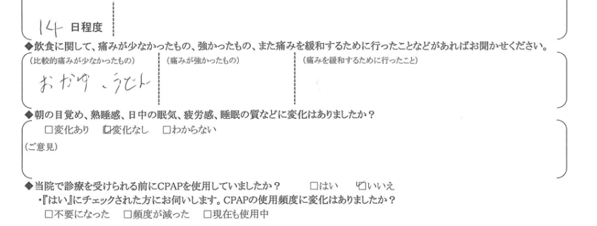 A:(痛みが少なかったもの)  おかゆ・うどん