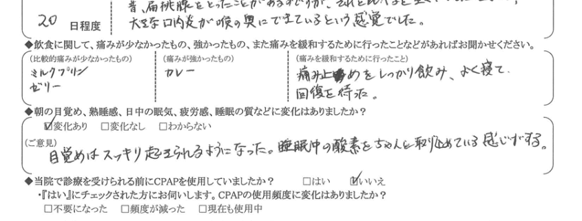 術後の患者様の感想 No. 2973