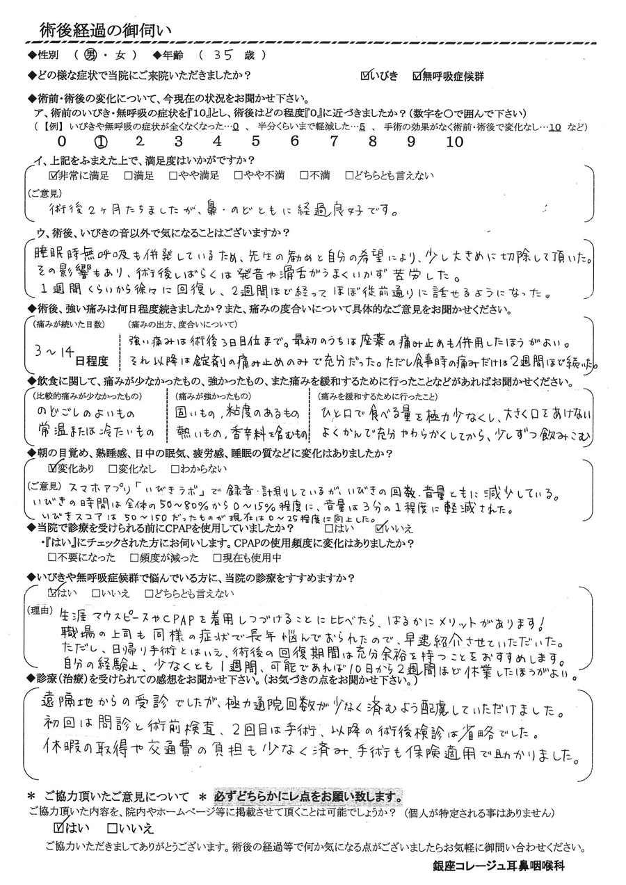 (ご意見) 術後2ヶ月経ちましたが、鼻・喉ともに経過良好です。