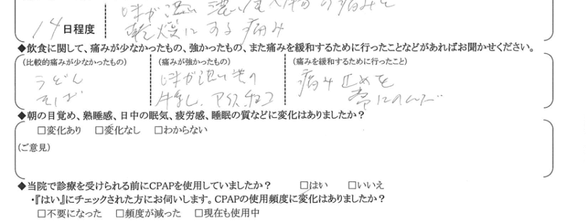 Q.飲食に関して、痛みが少なかったもの、強かったもの、また痛みを緩和するために行ったことなどあればお聞かせ下さい