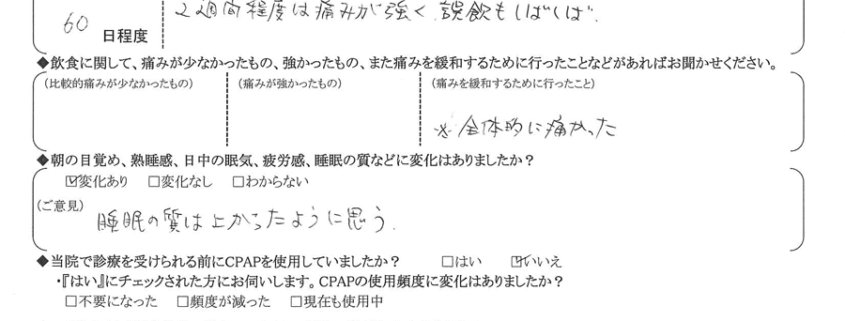 術後の患者様の感想 No.3016