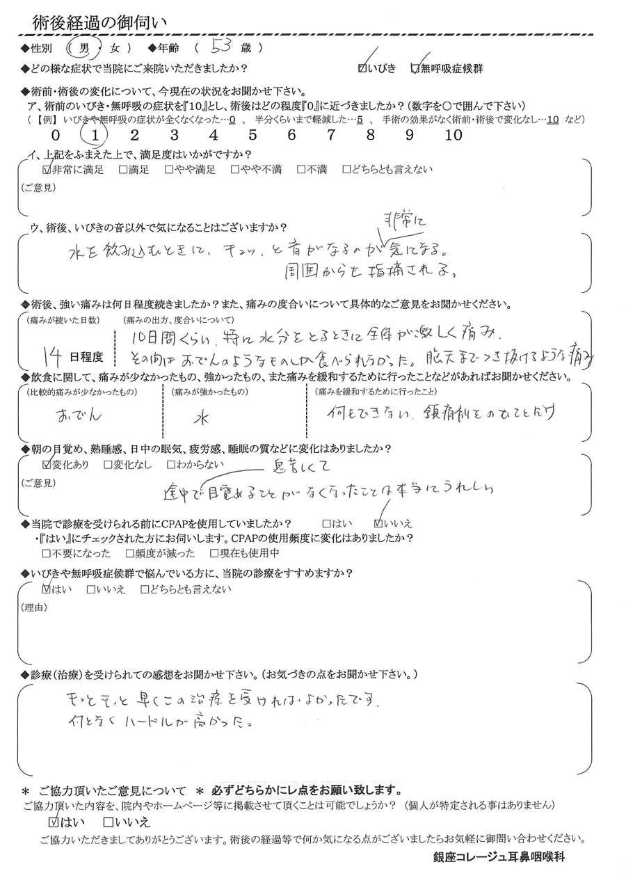 術後の患者様の感想 No.3018