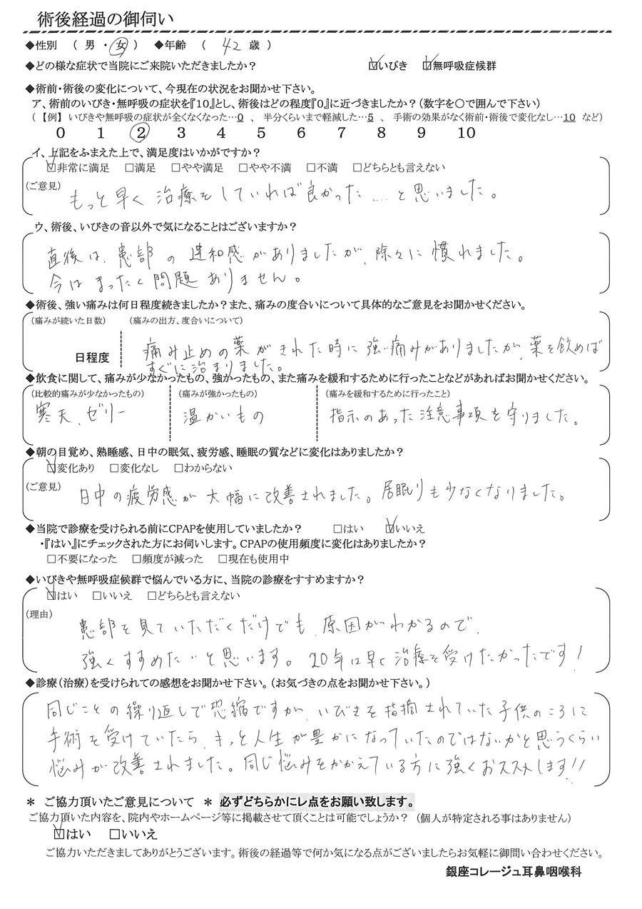 術後の患者様の感想 No.3037