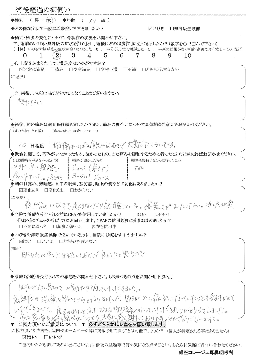 術後の患者様の感想 No.3056