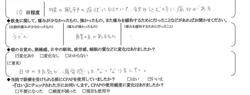 (ご意見) 日中の眠気や疲労感は無くなりました。