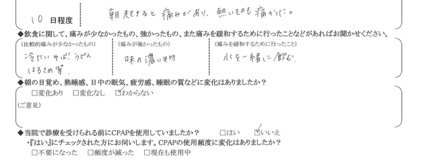 (痛みの程度について) 朝起きると痛みがあり、熱い物も痛かった。