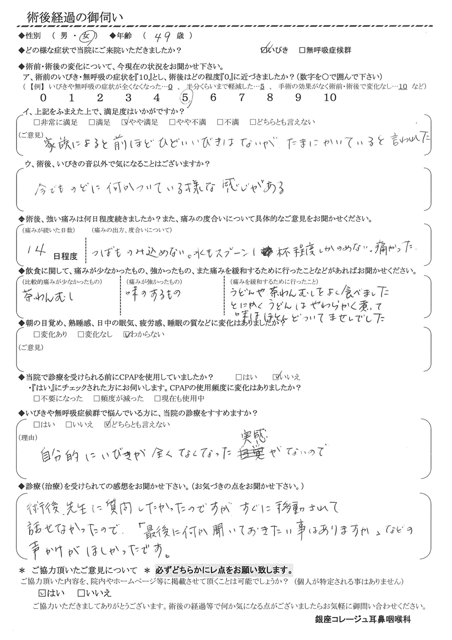 術後の患者様の感想 No.3084