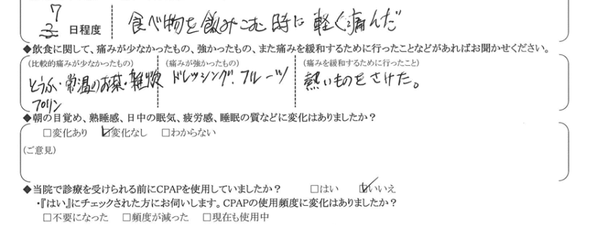 A:(痛みを緩和するために行ったこと)  熱い物を避けた