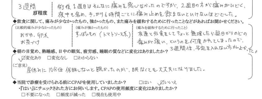 術後の患者様の感想 No.3093
