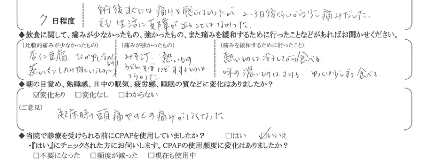 術後の患者様の感想 No.3097