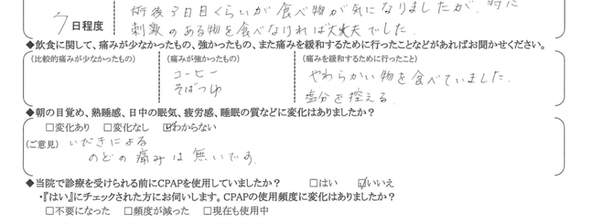 術後の患者様の感想 No.3102