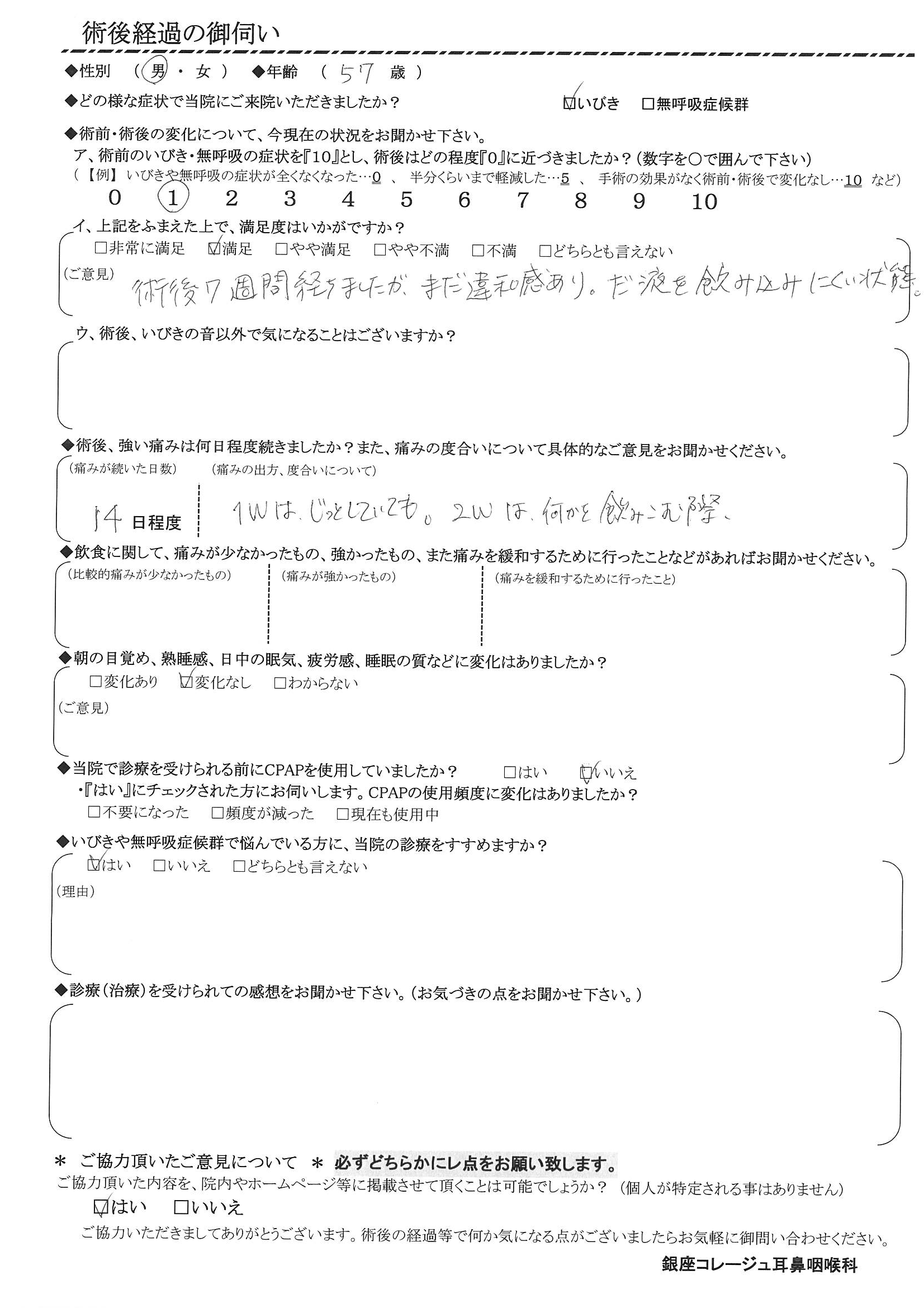 (ご意見)  術後7週間経ちましたが、まだ違和感あり。唾液を飲み込みにくい状態。