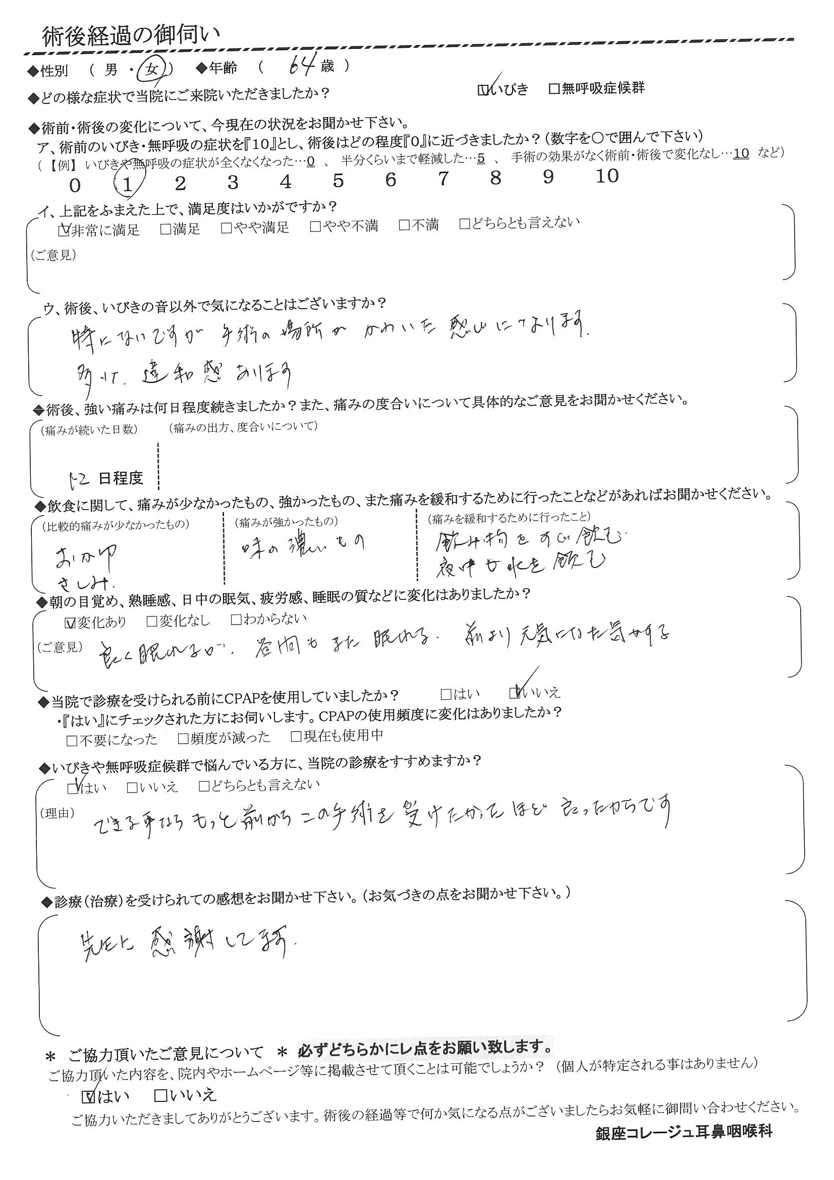 術後の患者様の感想 No.3108