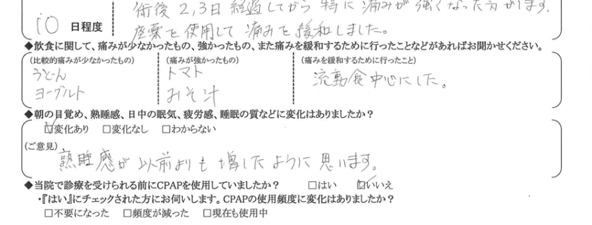 (ご意見) パートナーから、いびきが気になると言われなくなりました。