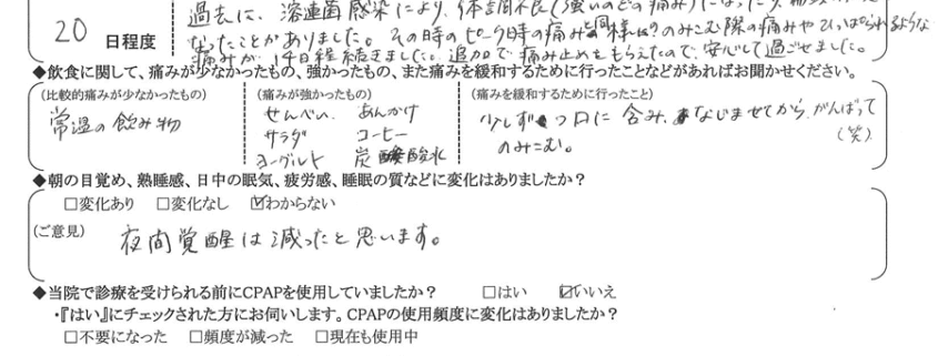 Q.診療(治療)を受けられての感想をお聞かせ下さい。